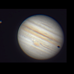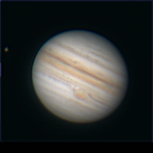 When I finally landed Jupiter on the camera’s imaging chip and brought the view into focus, I was pleasantly surprised to see that the Great Red Spot was visible and, as an added bonus, a shadow transit by Jupiter’s moon Ganymede was in progress.